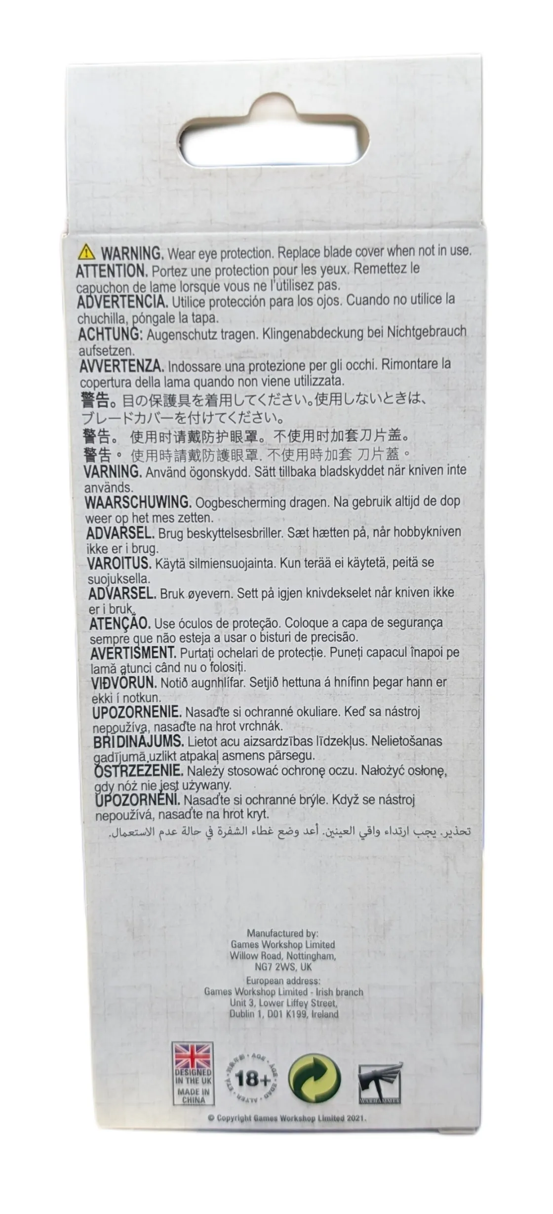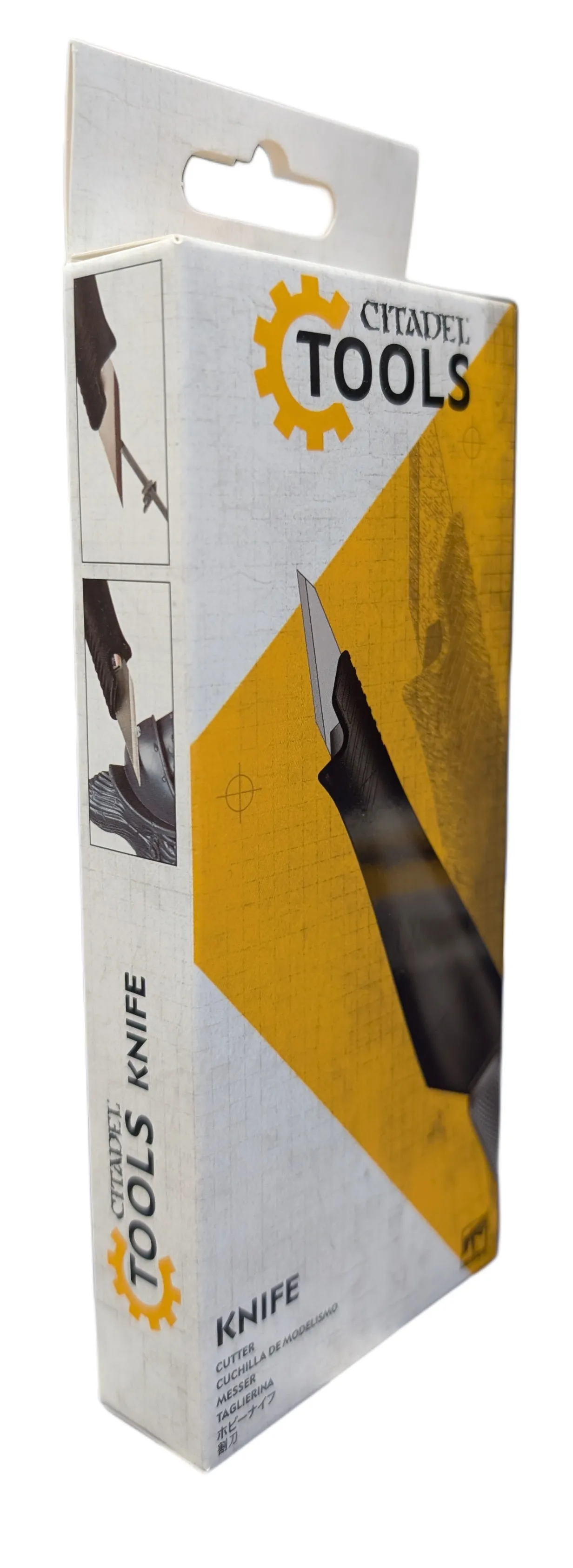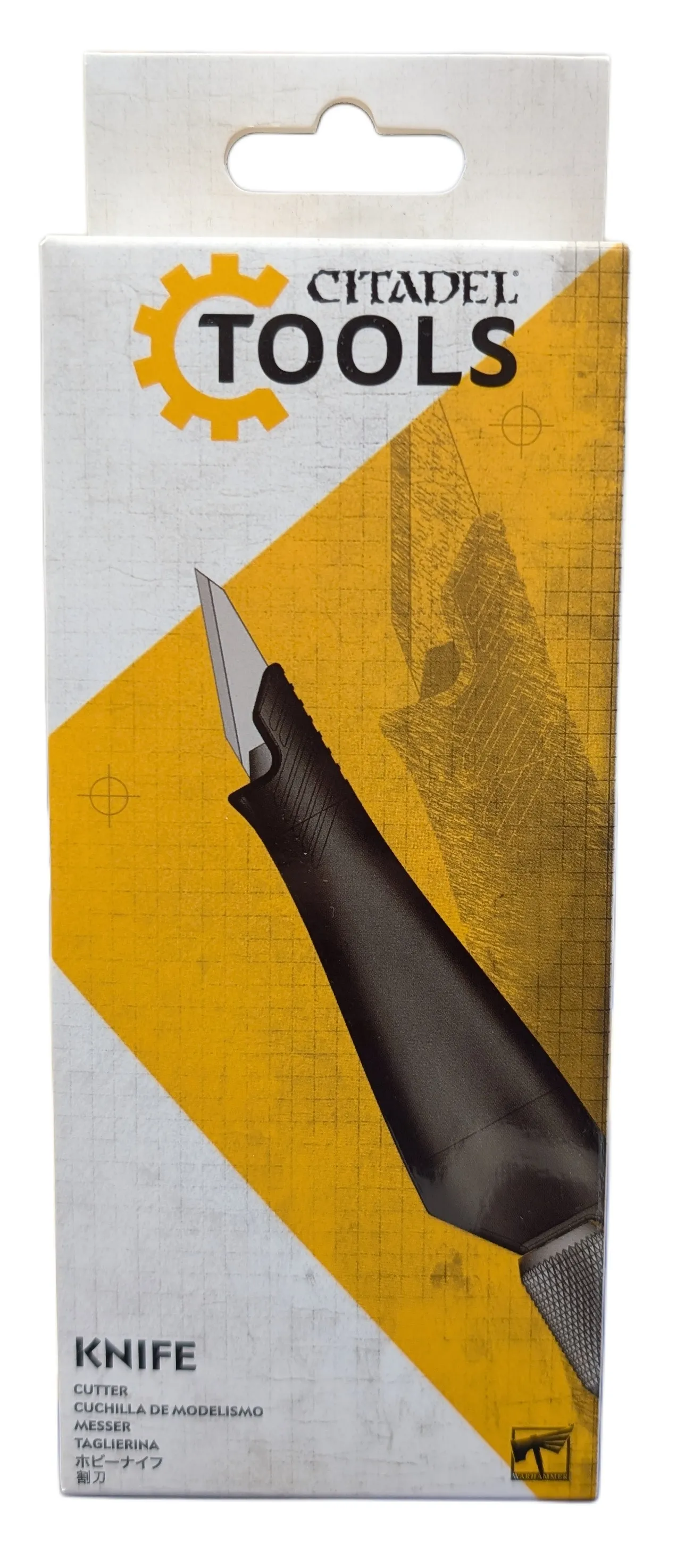 Każdy hobbysta Warhammera potrzebuje solidnego noża modelarskiego, dlatego zespół Citadel Tools zaprojektował narzędzie stworzone specjalnie z myślą o pracy nad miniaturami. Citadel Knife posiada w pełni rzeźbioną rękojeść z twardego plastiku oraz szereg sprytnych rozwiązań zwiększających bezpieczeństwo i wygodę użytkowania.